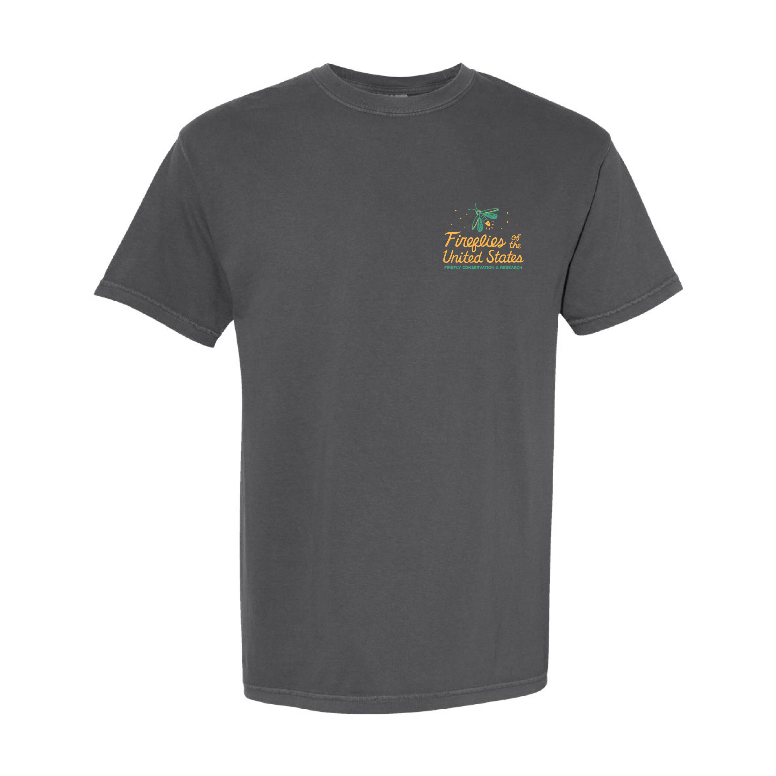 The front of the shirt carries a left chest logo with the words “Fireflies of the United States” and a firefly perched above.