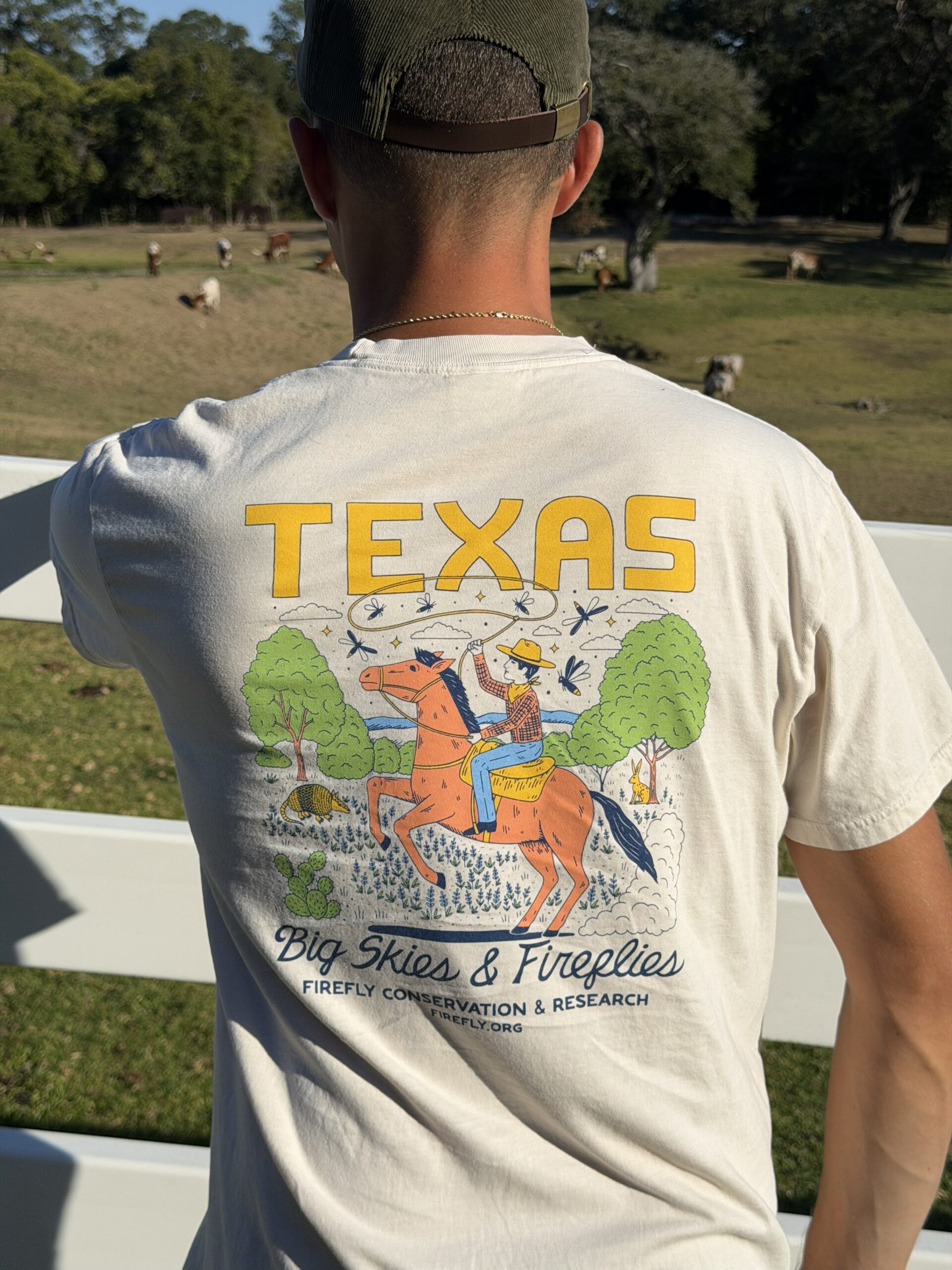 This is more than just a shirt—it’s a statement of pride in Texas landscapes and a way to support the protection of fireflies across the state.